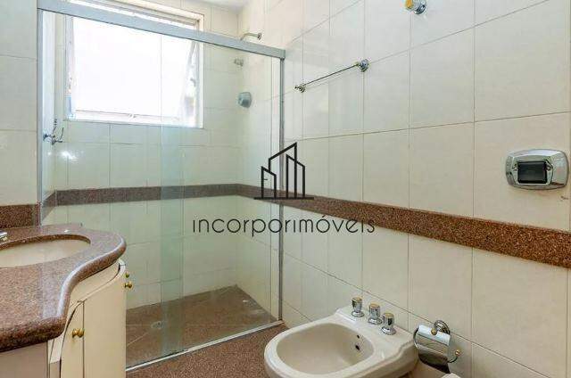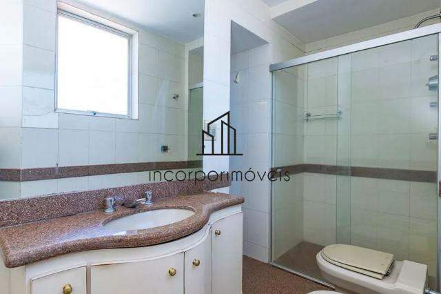Banhos com armários, espelho e box em vidro temperado.